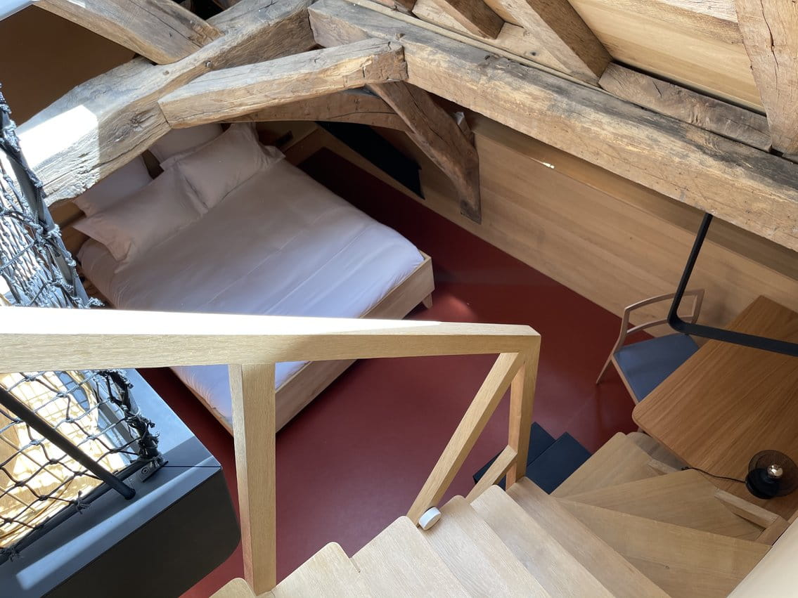 Atypical room NOT RECOMMENDED FOR PEOPLE HAVING DIFFICULTY MOVING due to the bathroom, accessible by "miller's" stairs, from the sleeping area.